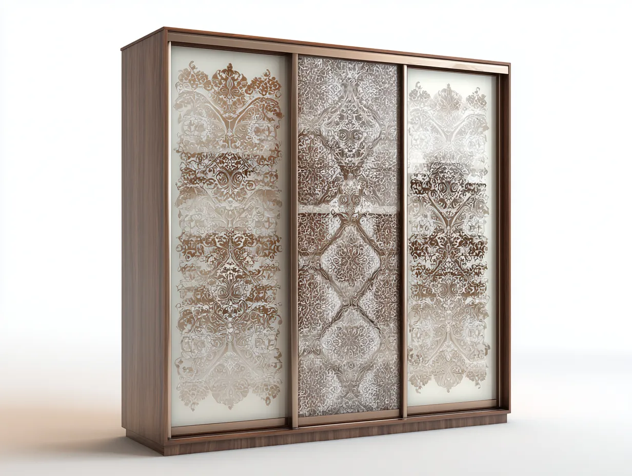 Armadio con ante scorrevoli-legno-vetro-228x60x210 cm-Beige-Trasparente-stile contemporaneo