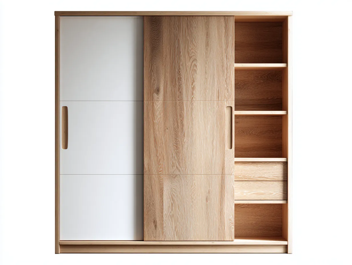 Armadio con ante scorrevoli-legno-200x58x205 cm-Naturale-Bianco-stile scandinavo